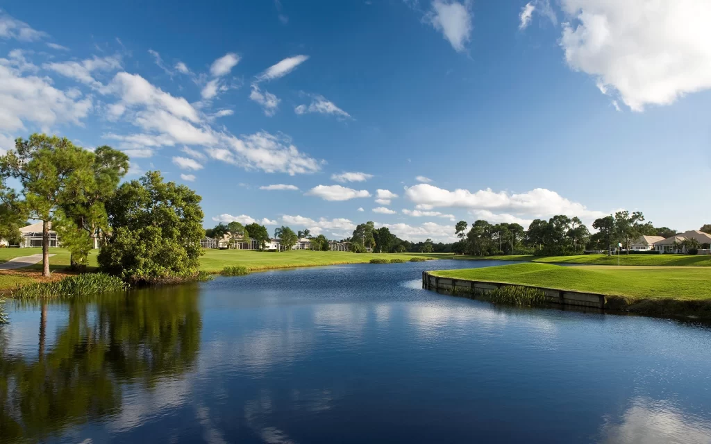 The two-story clubhouse commands a magnificent view of emerald green fairways and azure blue waterways. Its design, contemporary refinements and floor-to-ceiling glass contrast the warmth of soft colors and beautiful palms in an inviting atmosphere. A place of pride built for shared good times.
