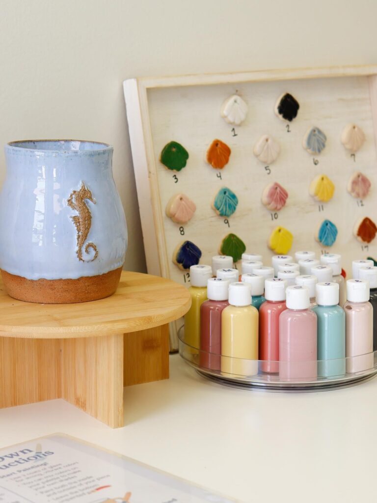 Stop by and explore the large selection of ready-to-paint ceramics and glazes, perfect for all ages. Walk-ins are welcome during open hours! Choose a cozy seat in the studio, enjoy the view from front patio tables, or relax out back on the spacious patio while you bring your masterpiece to life. Once finished, your piece will be kiln-fired and ready for pickup in about 5 days. On vacation? No problem—shipping is available!